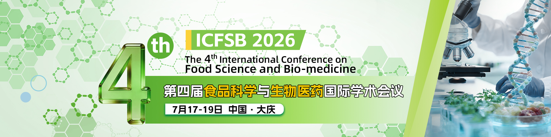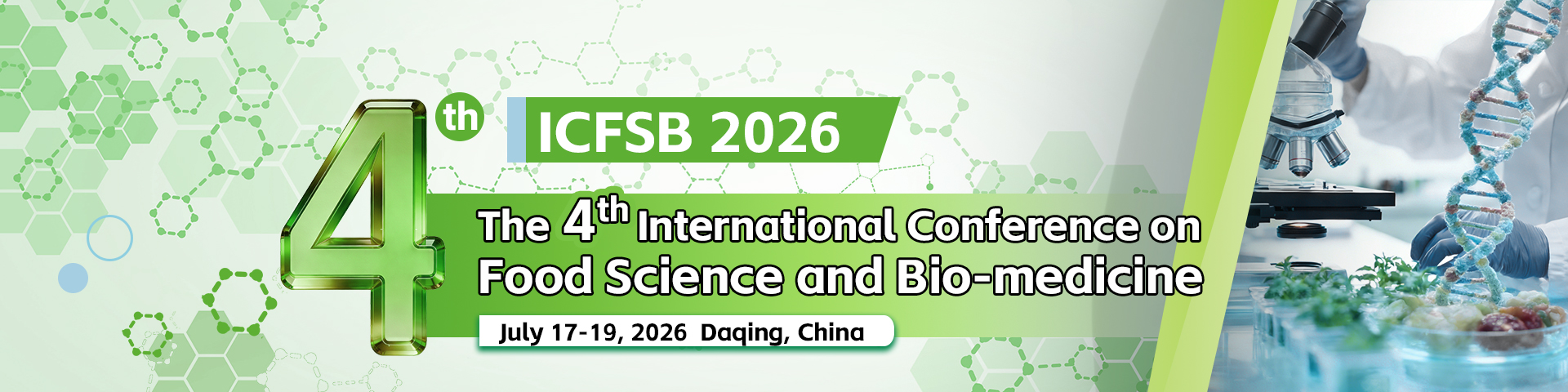 The 4th International Conference on Food Science and Bio-medicine(ICFSB 2026)is scheduled to be held in Daqing, China from July 17-19, 2026. The theme of the conference is Bioengineering and food science, covering bioengineering, biomedicine, microbiology, molecular biology, biochemistry, food science, agricultural technology, food safety and quality.